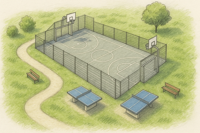 • Offrir un espace de jeu sécurisé et polyvalent pour les enfants, adolescents et jeunes adultes. • Encourager l’activité physique, la socialisation et le jeu en plein air. • Créer un lieu de rencontre intergénérationnel au sein du parc.